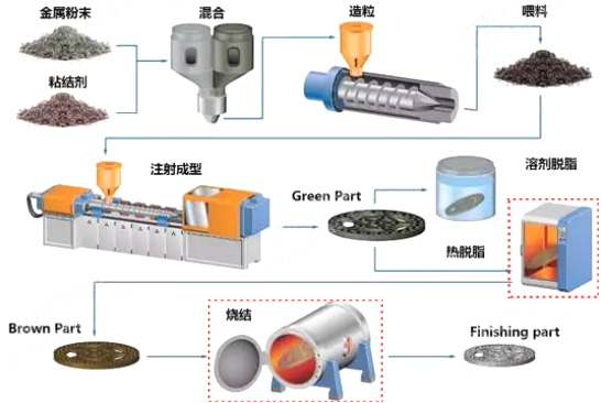 CIM工藝主要包括產品設計、模具設計、質量檢測、混合、成型、脫脂、燒結、二次加工等8個重要環節,我公司可根據客戶產品及工藝要求,定制脫脂和燒結設備,且可整合一起,提供真空脫脂燒結一體化設備。