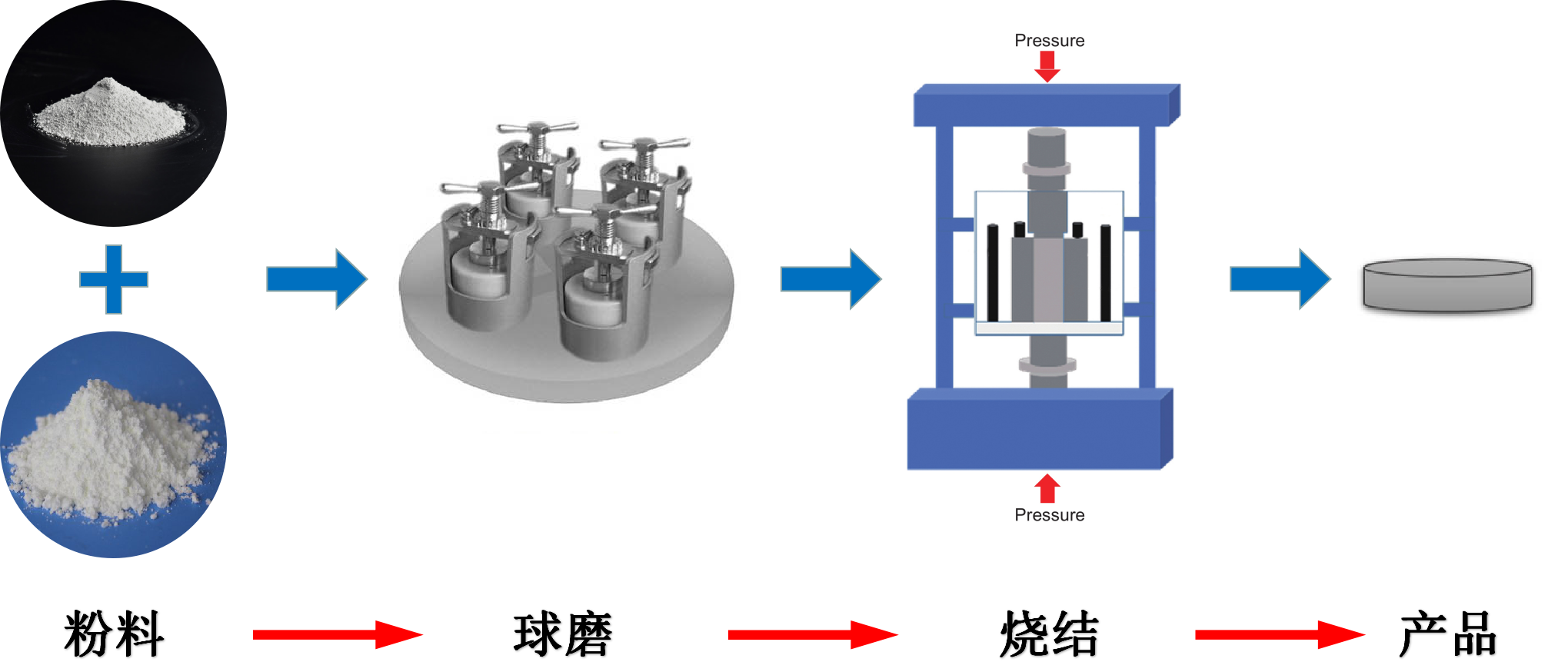 將原料粉體松裝如模具中,壓實后在真空狀態或惰性氣體的保護下,熱壓燒結制備。