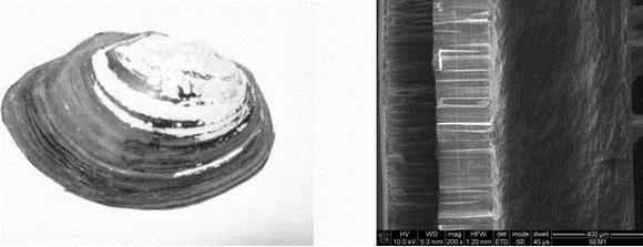 隨著科學技術的發展和進步,對材料的性能要求也越來越高,傳統材料由于結構單一,綜合性能不夠突出,難以滿足對多性能耦合要求的服役環境。但是由多種不同性能的材料通過物理或者化學方法結合制備而成的復合材料,既能保持各組元材料獨特的性能,也能取長補短,產生協同效應,使新制備的復合材料綜合性能遠優于各組員材料的性能,從而滿足不同復雜工況的要求。自然界中也有很多類似的結構,軟/硬相結合的多層結構可以提高其強度硬度的同時也能有很好的韌性。下圖為貝類外殼的層狀結構。