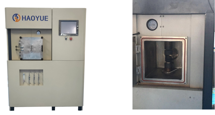 圖1上海皓越生產的熱壓燒結爐(左)外觀(右)爐內構造