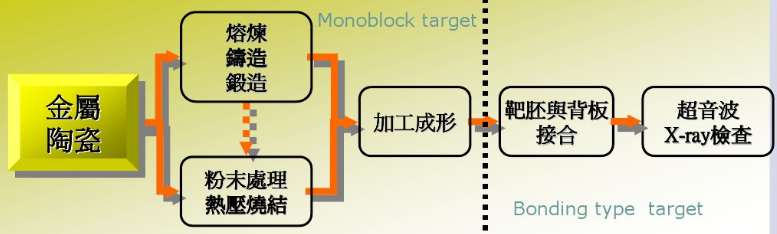 粉末冶金法;將一定成分配比的合金原料熔煉,澆注成鑄錠后再粉碎,將粉碎形成的粉末經等靜壓成形,再高溫燒結,最終形成靶材。常用的粉末冶金工藝包括冷壓、真空熱壓和熱等靜壓等,而真空熱壓燒結可以制備大尺寸、高致密度的平面靶材,應用最為廣泛。