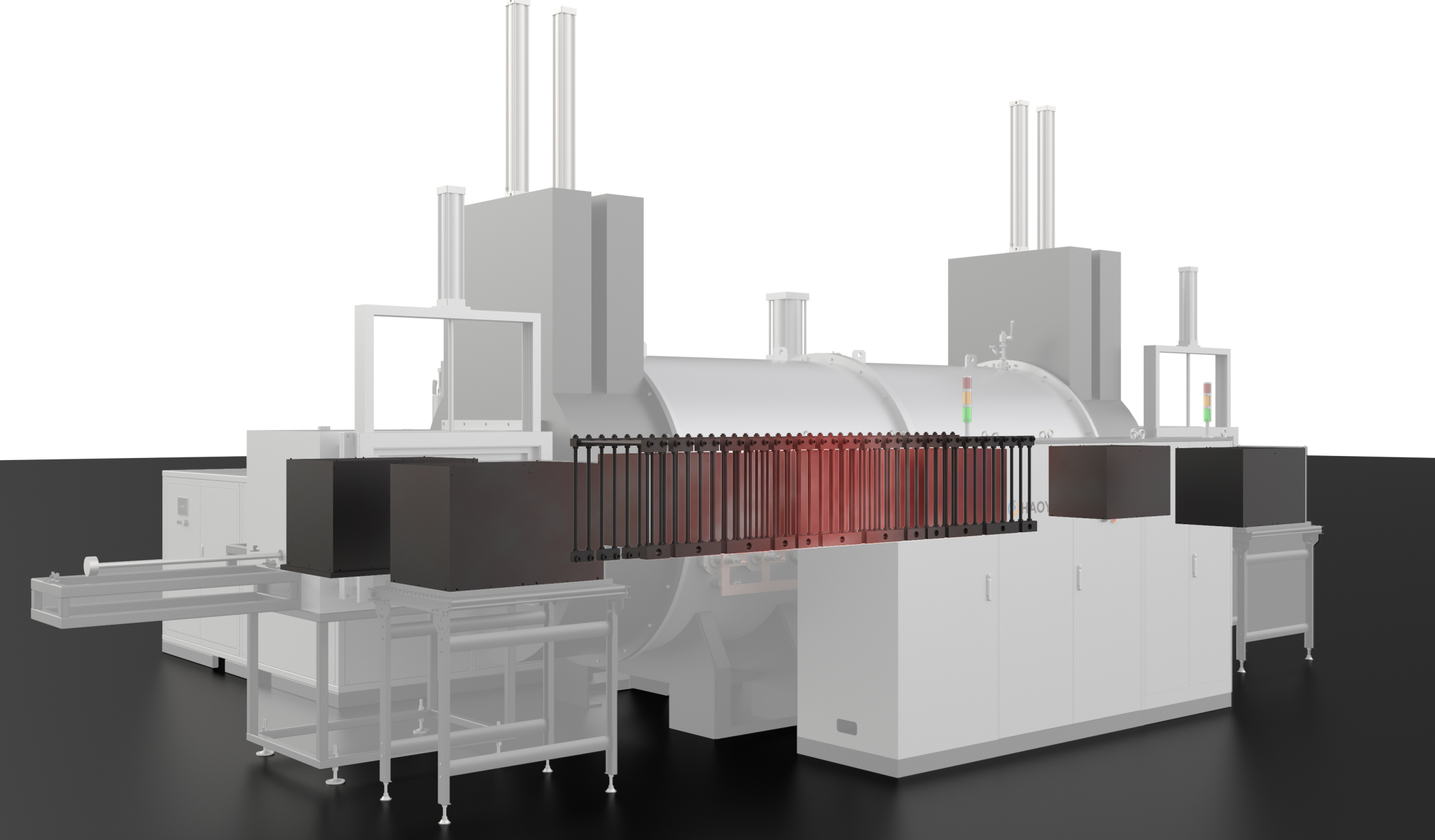 連續式真空爐具有先進、生產自動化程度高、處理量大、熱處理產品質量好等優點,可大大提高企業的生產效率,節約人工成本。